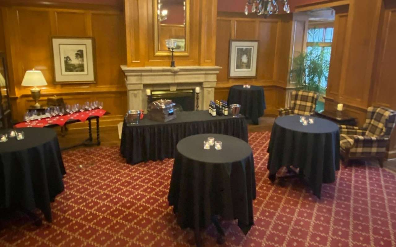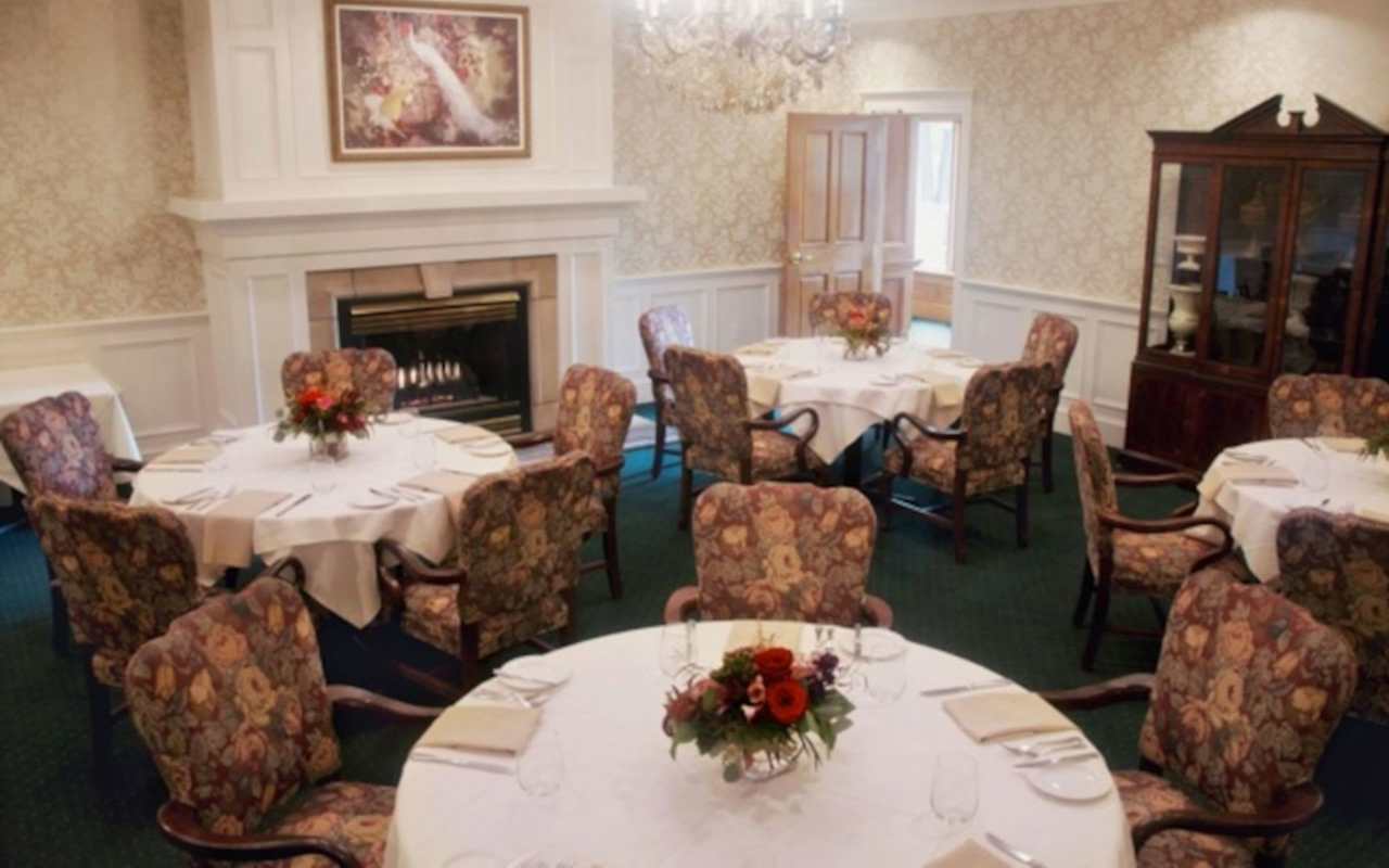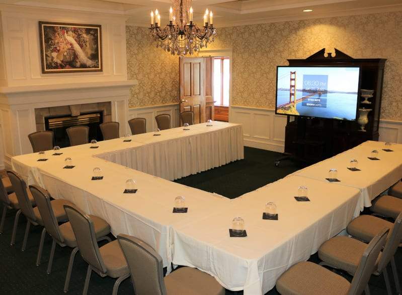 The Fireside Room features a cozy fireplace and rich dƩcor, perfect for grooms' dinners, business lunches or family gatherings up to 30 people. For corporate meetings these tables can be arranged in a square or U-shape for presentations, or, theater style seating.