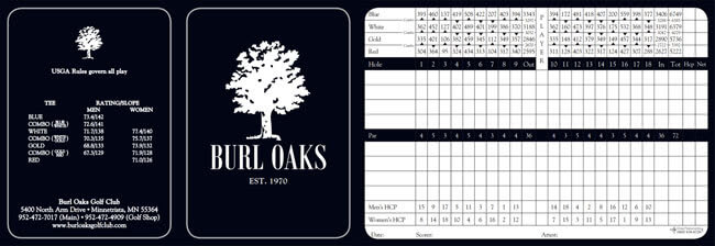Four sets of tees ranging from 5200 to almost 6,800 yards enable players of all skill levels to enjoy playing Burl Oaks. Accuracy off the tee is a premium with ponds and marshes coming into play on 14 of our 18 holes. Each hole is distinctively unique in its own regard. This differentiation of each, as the golf course navigates the "crooked water" landscape of Minnetrista, yields an unforgettable golf experience day in and day out.