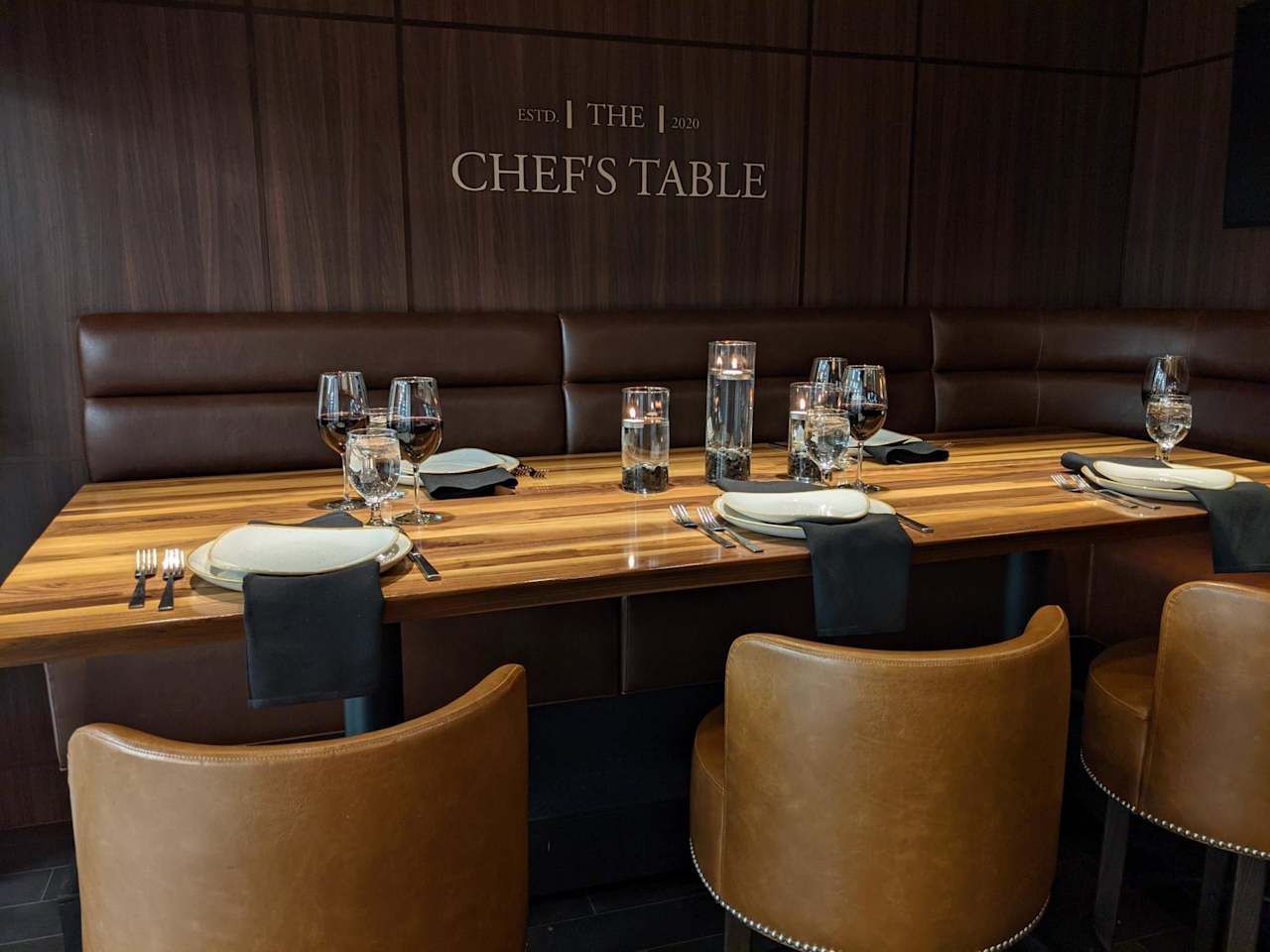 Tucked away with privacy options our Chef's Table is an experience like no other. Get a bird's eye view of Chef Kevin and his team as they prepare your personalized menu from scratch. The Chef's Table can seat 8 comfortably and is a unique idea for that 40th birthday party or private business meeting.