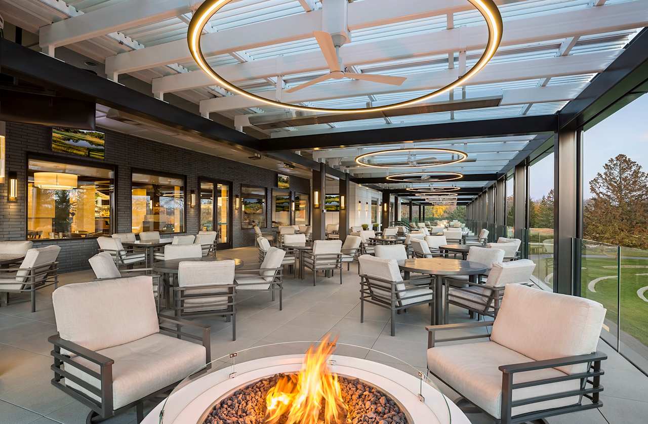 Our heated pergola has transformed our outdoor dining experience, allowing our members and their guests to enjoy the view of our scenic waterfall pond and exquisite grounds year round. Whether you are enjoying a cigar after a round or dinner and drinks with friends, the warmth from the pergola accompanied by the outdoor fire pits create the perfect ambience for the ideal evening.