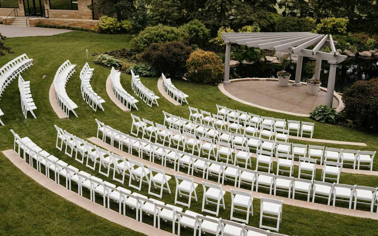 Your ceremony at Olympic Hills features a beautiful pergola overlooking our serene waterfall garden and glistening pond. The site offers tiered amphitheater seating with elegant white ceremony chairs. The spectacular sunsets behind the ceremony site each and every night is a photographer's dream come true. Our experienced and passionate team (keep scrolling to meet Emily!) are all yours from booking and planning all the way through to your last dance! We're here to make your special day everything you've ever wanted and more.