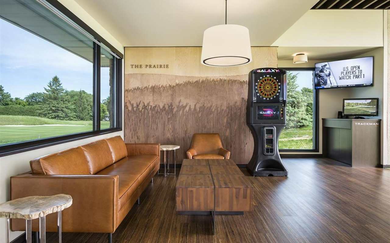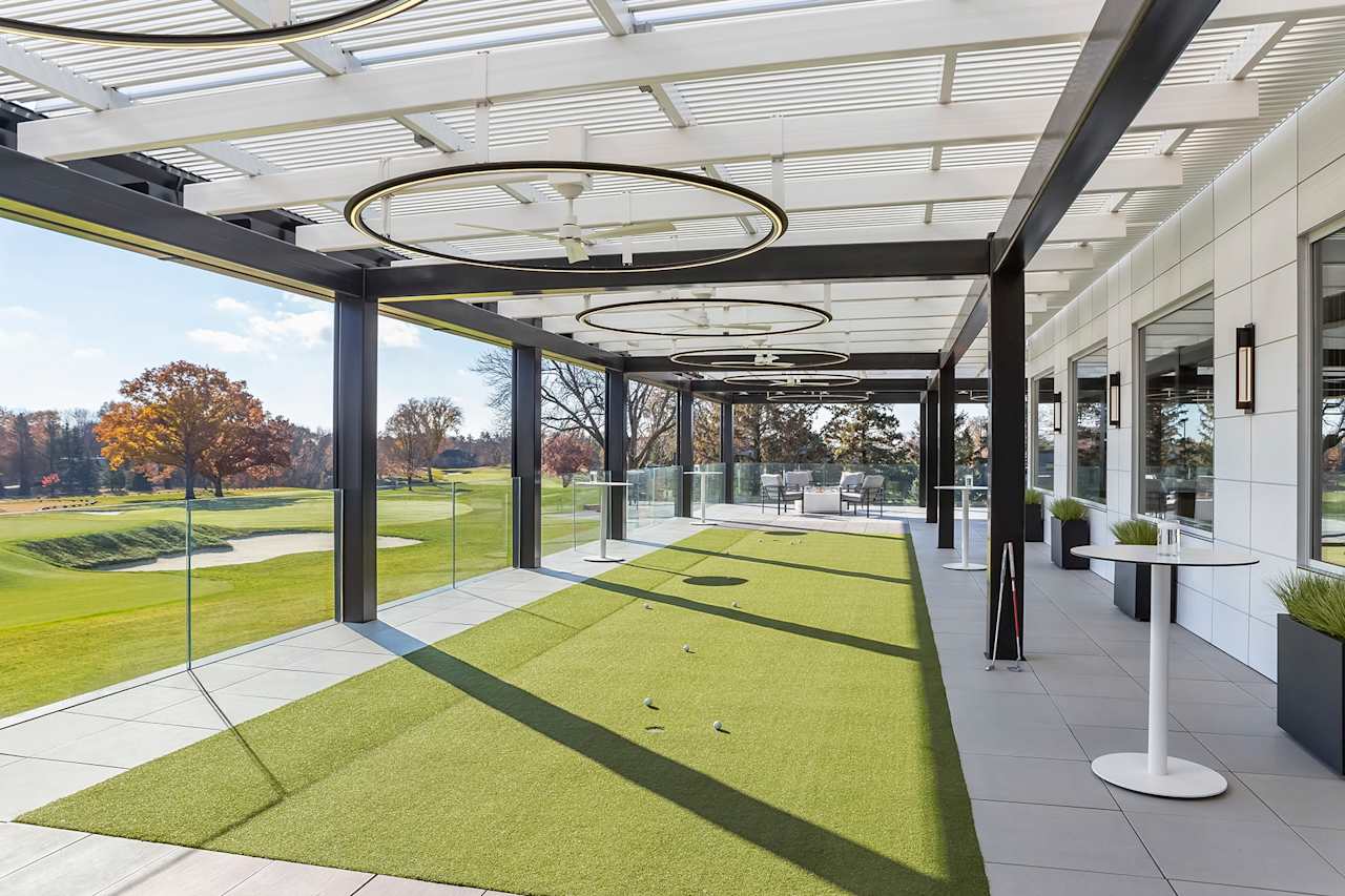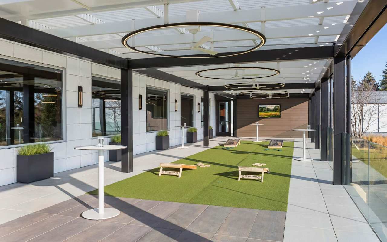 The Bays at Olympic Hills, an external building consisting of two indoor / outdoor golf hitting bays along with entry and lounge areas, were completed in June 2018 and came out truly remarkable. The facility is the first in Minnesota to have the ability to open garage doors and hit balls outside while standing inside a heated environment or close the garage doors, deploy a screen, and use the same space as a simulator.