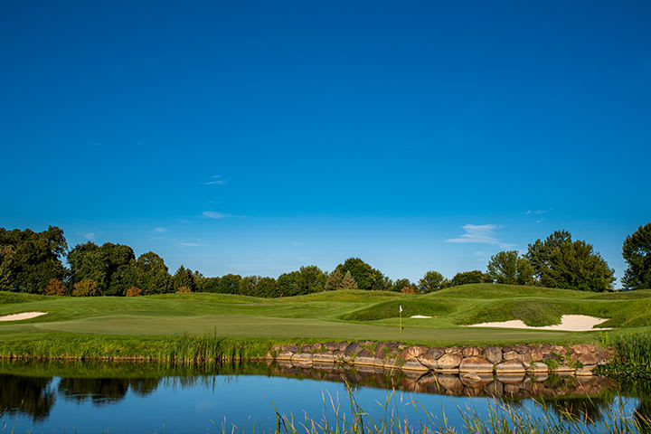 Honored multiple times by Golf Digest magazine among the top 20 golf courses in Minnesota, TPC Twin Citiesā par-72, 7,468-yard championship golf course was designed by legendary golfer and golf course architect Arnold Palmer to blend seamlessly with the natural rolling terrain on the site of a former sod farm 15 miles north of Minneapolis/St. Paul. Collaborating with PGA TOUR player consultant and Minnesota native Tom Lehman, Palmer sculpted a serene masterpiece featuring Bentgrass tees, fairways and greens, native prairie grasses, picturesque wetlands and 27 bodies of water, all framed by stately stands of mature oak, spruce and pine trees. After the competitive enhancement project in 2018, the course will pay as a par-72 for our members and guests, and will play as a par 71 for the PGA TOUR players.