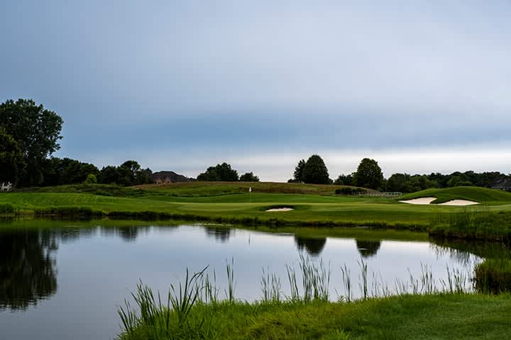 A classic risk/reward, this 594-yard par-5 double dogleg challenges golfers with more strategic options than perhaps any other hole on the course. A tee shot played over any portion of the deep fescue grasses framing the right side will shorten the hole significantly. Any successful approach played over the pond should safely find the wide putting green.